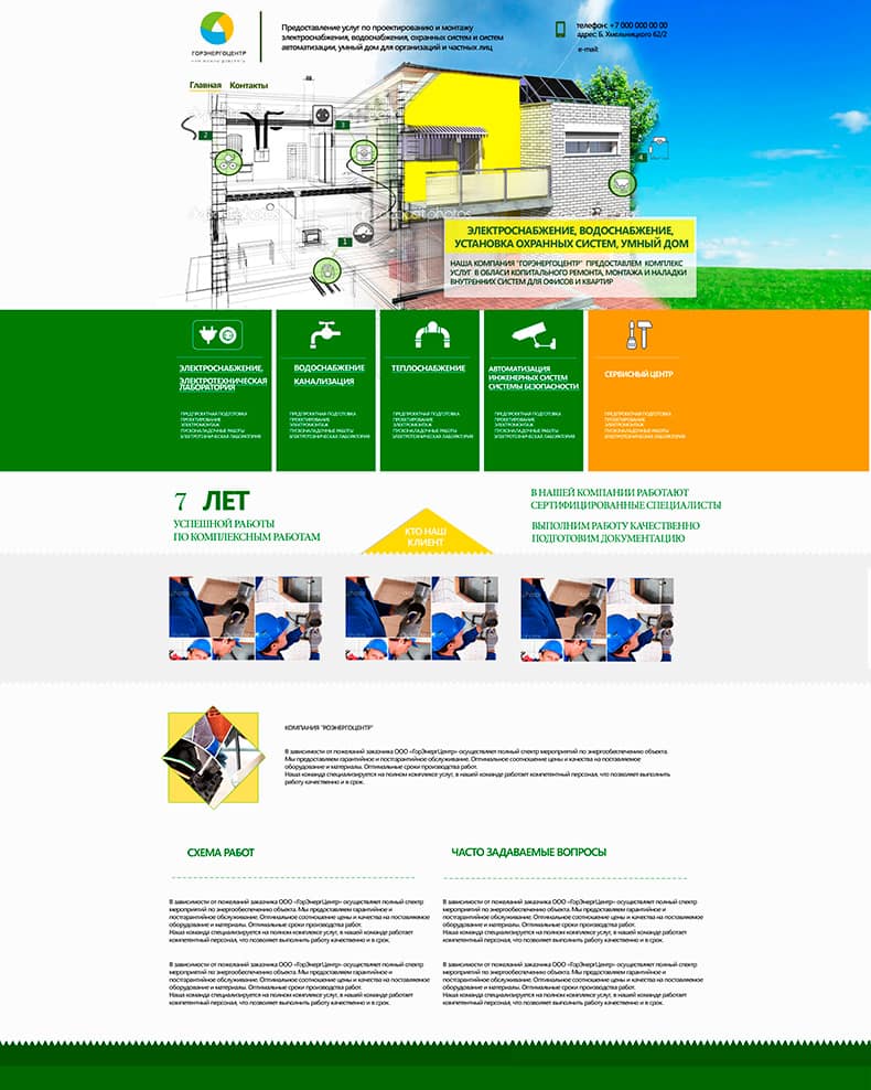 Компания предоставляет услуги по электроснабжению, водоснабжению, теплоснабжению и автоматизации инженерных систем.